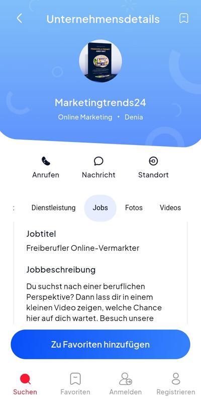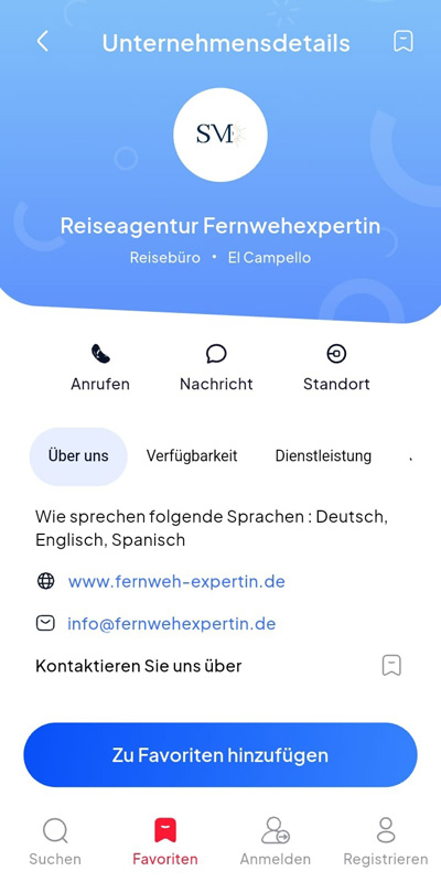 Sie können jedes Firmenprofil über einen Button zu einer Favoritenliste hinzufügen.
